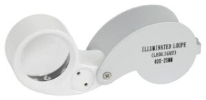 The Grower’s Edge® Universal Cell Phone Illuminated Microscope with Clip can be clipped onto any smartphone or mobile phone that is equipped with a camera. Images can be taken with your camera and stored in your smartphone’s photo library. Great for record keeping and photo sharing. Battery operated (included). 60x magnification. 2 light settings: high and low. On/off switch. Includes storage case.